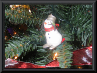 A tree, prelit and complete with ornaments. And snowmen. Lots of snowmen. After years of my husband making fun of our Charlie Brown tree, I splurged last year and bought a prelit one from Walmart and I love it. I also opted to ditch the handmade garland and bows that I'd used in the past and go with ribbon and more glass ornaments that he prefers instead.